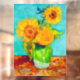 Ventana con el cuadro de vida de Vincent van Gogh que representa un ramo de girasoles en un jarrón verde. Parte de su versión inicial en la serie Arles Sunflowers. Un gran regalo para los amantes de las pinturas florales, el posimpresionismo y el arte holandés.