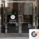 Un logotipo de hojas de lechuga que asoman de un tazón de ensalada se combina con el nombre de su empresa para crear el motivo perfecto en esta calcomanía personalizada para ventana. Ideal para empresas de alimentos, restaurantes, empresas de catering, preparación de comidas y más. Arte y diseño © 1201AM Design Studio