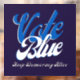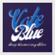 La tipografía de eslogan demócrata estilo cling de ventana que es adecuado para el hogar o el negocio, tiene "Vote azul" y "Mantener la democracia viva" en tipos de letra azul y blanco con estilo retro