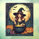Whimsically Enchanting Witch With Spiders and Jack O Lanterns is a design for Halloween. A lone witch looking over a bubbling cauldron, spiderweb-draped decor, bewitching familiars, and spellbinding party favors. Time to conjure up some magical inspiration.
