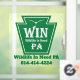 Wildlife In Need PA partially transparent window decal with logo, our full name and phone number.