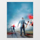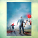 SlipperyJoe's feliz Halloween brillantes ojos zombis brote señal de cuarentena figura de sobreviviente masculino está en primer plano infección por gases máscara aviones aterrizar manchas de sangre misteriosas figuras post-apocalípticas mundo infectado zombie armado con martillo para combatir artística tormenta oscura paisaje desolado LGBTQIA regalos de orgullo gay