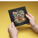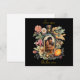 Celebre la temporada con una tarjeta de Navidad inspirada en el estilo vintage que presenta un diseño elegante de botella de vino botánico y su propia foto familiar personalizada. La obra de arte es rica en texturas de grabados florales dibujados a mano, bayas maduras y un efecto de etiqueta de papel envejecido sobre un fondo negro sofisticado. Es el saludo de alta gama perfecto para amigos y familiares para brindar por otro año de estar "envejecidos a la perfección".