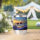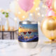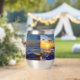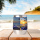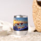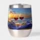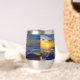 Vino en la playa al atardecer. Un hermoso vaso de vino para mantener el vino fresco al aire libre. Un regalo de bonito.