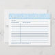 La receta de la cocina es sencilla y elegante, con un borde de encaje floral de color azul bonito y una combinación de colores azul claro, blanco y azul marino. Se coordina con nuestra invitación a la ducha de novias boda "Algo prestado".