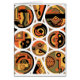 Patrón de pochoir de jazz de arte deco de ilustracion vintage de Georges Valmier, de la serie Colección Decors et Couleurs, 1930. El pochoir es una técnica de esténcil común en pinturas surrealistas. Diseño moderno con formas geométricas redondeadas de círculos, líneas y triángulos. Bonita paleta de colores cálidos de otoño con colores naranjas, dorados y grises neutros.