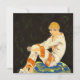 Imagen de la vida cotidiana del ilustracion vintage art deco que presenta a una señora elegante sentada y relajada mientras fuma un cigarrillo. Está tumbada en pijamas y zapatillas borrosas. Art Deco de S. Chompre. "Femmes Modernes, 1926" de S. Chompré es una serie de ilustraciones con mujeres contemporáneas de los años 20 de Samuel Chompré. El título "Femmes Modernes" se traduce como "Mujeres Modernas" en francés. Estos trabajos suelen incluir a mujeres en diversos ambientes, como sentadas, reclinadas o interactuando con objetos, a veces incluyendo gatos o cigarrillos. Conocidos por su estilo distintivo y su representación de las mujeres durante los años 20.