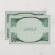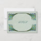 Este diseño presenta un fondo de aspecto envejecido en un color pergamino con tonos verdes y algunas plumas de pavo real de estilo Art Nouveau como borde decorativo. Esto funciona durante casi cualquier temporada, formal o informal.