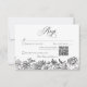 Trae elegancia intemporal a tu día especial con esta vintage tarjeta de respuesta boda floral con un código QR, con un ilustracion de flores de estilo tapiz blanco y negro y hojas enmarcando un centro blanco fresco. El intrincado borde botánico le da un toque clásico, de estilo heróico, perfecto para los bodas tradicionales, de inspiración jardiana o vintage. Creado por Simply Farmhouse Press. Para piezas de personalizado o para solicitar un producto que no esté en nuestra tienda, envíe un correo electrónico a simplyfarmhousepress@gmail.com.