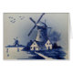 This beautiful Delftware scene, (delft pottery) shows a vintage hand painted blue and white landscape from rural Holland. Very old fashioned -- a lovely vintage windmill and some buildings next to water. The scene was found on a very old antique tile. This vintage delft pottery landscape is the perfect blue and white old-fashioned look for our gifts.