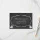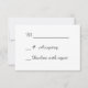 Esta tarjeta de respuesta boda de moda retro presenta un diseño de signo de desplazamiento con el texto personalizado dentro. En las esquinas inferiores hay dos corazones de diseño de tiza. Las imágenes y el texto se colocan en un fondo de pizarra gris oscuro. La parte posterior de la tarjeta de respuesta es blanca para que el encuestado la marque fácilmente. Todo el texto es personalizable. Esta tarjeta coincide con las "Invitaciones a la Boda del Corazón de Chalkboard Vintage" en nuestra tienda.