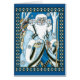 Imagen de Santa Claus, Navidades de ilustracion de época, con San Nicolás vestido con un abrigo azul, sosteniendo un globo de nieve en una mano, y sosteniendo un bastón en la otra. Un oso de peluche cuelga de su abrigo y un saco de juguetes está sobre su espalda.