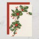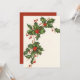 Navidades de ilustracion de época de vacaciones en el diseño de la vegetación con una rama de árbol floral tradicional con hojas huecas y bayas rojas. Plantas botánicas de la era victoriana. ¡Saludos de temporada, Felices Fiestas y Feliz Navidad!