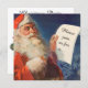 Invitación de fiesta para Navidades personalizares, simplemente agrega tu información! Ilustracion de la Vintage. Imagen de feriado navideño con un alegre Santa Claus usando a su gorra rojo y revisando su traviesa o buena lista en la Noche Navidad.