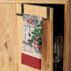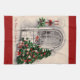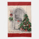 Toalla de cocina de vacaciones con una vintage escena de la ventana de Navidad del árbol de Navidad y luces brillando por la noche junto a una hermosa ventana.