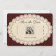 Announce your special date with timeless elegance using this vintage paper lace save the date card. Featuring an ornate lace-inspired frame, a rich burgundy background, and a classic photo centerpiece, this design is perfect for romantic, vintage, and traditional weddings. Fully customizable with your names, date, and photo, this save the date card creates a warm, heirloom-style impression your guests will love and remember.