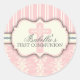 Un bonito diseño de damasco y rayas en un suave y femenino color rosa y crema. Adorada con una cruz de coordinación, es apropiada para cualquier celebración sacramental, y cada área de texto es personalizable. Hace un hermoso sello para sobres o favorece a un pegatina para la Primera Comunión, la Cristiandad o la Confirmación de su hija.
