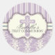 Un bonito diseño de damascos y rayas en una combinación de suave, lavanda y crema. Adorada con una cruz de coordinación, es apropiada para cualquier celebración sacramental, y cada área de texto es personalizable. Hace un hermoso sello para sobres o favorece a un pegatina para la Primera Comunión, la Cristiandad o la Confirmación de su hija.