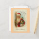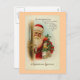 Imagen clásica vintage de Navidad de Santa Claus en la puerta con regalos y huida. El mensaje es: "Ver la alegre cara de Papá Noel mientras avanza a paso de punta, trayéndole alegría y ovación a mis queridos amigos aquí". El saludo más grande es "Un saludo de Navidades".