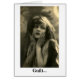 Fotografía vintage de una joven de aspecto preocupante con las manos apretadas en la cara. Sólo hay una palabra en la parte delantera de la tarjeta: Culpa... (dentro de la tarjeta): ...el regalo que sigue dando.