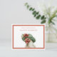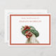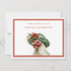 A charming, vintage-style illustration featuring a white hen in profile against a clean white background. The hen wears a whimsical green bonnet with white polka dots, adorned with a soft coral-pink rose and delicate greenery, giving the image a warm, farmhouse feel. A muted terracotta-colored double border frames the design, adding a cozy, rustic elegance. The overall look is playful yet refined—perfect for a recipe card, evoking homemade comfort, country kitchens, and heirloom recipes passed down with love.