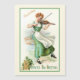 Festividad vintage St. Patrick's Day saludo presentando bonito de clase irlandesa con vestido verde jugando al violín con fondo rural y mensaje de Erin Go Bragh.