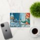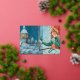 Tarjeta de saludo de Relieve metalizado Vintage Merry Christmas con una pintura navidad de la artista sueca Jenny Nyström (1854-1946) que muestra a una mujer en una ventana abierta en un paisaje invernal sueco y una iglesia en el fondo. Jenny Nyström era pintora e ilustradora conocida principalmente como la creadora de la imagen sueca del jultomte en tarjetas de Navidad y portadas de revistas, vinculando así la versión sueca de Santa Claus con los gnomos y el tomtar del folklore escandinavo. Personalizable completo.