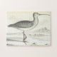 This vintage look puzzle design features a depiction of a bird standing on the ground.