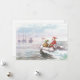 Santa De Navidad Retro Vintage En Barco Con Presenta Tarjeta De Vacaciones.