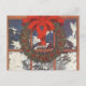 Ilustracion Vintage Feliz Navidad navidad en invierno diseño paisajístico de temporada. Escena de paisaje de nieve con vistas a los nevados en el bosque y una casa a lo lejos a través de una ventana de nueve paneles con una corona de pino con un arco rojo colgando sobre ella. Un elemento arquitectónico.