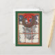 Ilustracion Vintage Feliz Navidad navidad en invierno diseño paisajístico de temporada. Escena de paisaje de nieve con vistas a los nevados en el bosque y una casa a lo lejos a través de una ventana de nueve paneles con una corona de pino con un arco rojo colgando sobre ella. Un elemento arquitectónico.