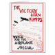 Ilustración vintage Cartel militar de patriotismo de la Primera Guerra Mundial Volantes del Préstamo de la Victoria; Cuidado con el Avión Especial. Por el artista Watkins, 1919. Aviones o biplanos oscuros y negros están volando en el aire y un dibujo rojo de un tren está en las vías del ferrocarril. Diferentes métodos de viaje y transporte para nuestros valientes soldados que van a la batalla. Valientes soldados patrióticos luchando por nuestra libertad.