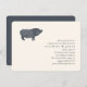 ¿Organizando una fiesta de compromiso informal de barbacoa? Invite a los invitados con nuestras invitaciones de fiesta de compromiso sencillas y elegantes, pero caprichosas, con una ilustración de cerdo de estilo vintage y los detalles de su fiesta en azul humo naval y gris.