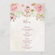 An elegant pink vintage floral menu to compliment your spring or summer wedding with sophisticated bouquets of blush pink watercolor flowers with rose gold details and pastel greenery.