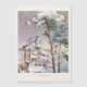 Clásico ilustracion vacacional reformado con nostalgia, que cuenta con un pueblo rústico y tranquilo cubierto de nieve, con una antigua iglesia de piedra, árboles y el cielo nocturno con copas de nieve.