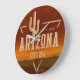 Diseño original de la república de época. Poster de la puesta de sol de Arizona retro con icono de cactus y un vagón descubierto de nuestra colección Arizona
