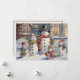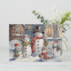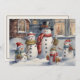 Vintage tarjeta de felicitación de Navidad con una pintura de una familia de hombres de nieve. Personalizado en la parte posterior con su mensaje y nombre. Comuníquese conmigo para obtener ayuda con su personalización o para solicitar productos adicionales de correspondencias o coordinación de Zazzle.