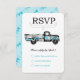Camión Vintage Aqua Chartreuse azul Verde azulado y dorado de cal que se le da un golpe Vintage Retro Boda moderna RSVP Respuesta Tarjeta Insertar