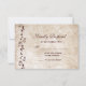 Esta tarjeta de respuesta boda tiene un fondo vintage de diseño antiguo de papel con viñas vitícolas elegantes que crecen a lo largo del lado izquierdo. Ideal para bodas de campo, bodas de granero y bodas de vaquero. Elija entre esquinas cuadradas o redondeadas. Diseñado para concordar con este estilo tipográfico invitaciones rústicas: tarjetas RSVP de boda de papel vintage, tarjetas rústicas rsvp, tarjetas rsvp country, boda de granero, tarjetas rsvp country western, tarjetas de cowboy rsvp, tarjetas rsvp de boda angustiadas, papel elegante, vintage, anticuado, antiguo, marrón, viñas, floral, elegante. rsvp