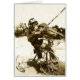 Una fotografía del vintage de un chimpancé que monta un triciclo y que lleva una gorra de béisbol. Él toca el violín al mismo tiempo. ¡Bravo! El interior de la tarjeta es en blanco para su propio mensaje.