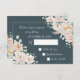 Wedding RSVP cards with vintage style cream, blush and white watercolor flowers, pastel greenery and a navy blue background. Customizable with your wedding details, available in many matching wedding products.