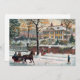 Vintage calle de invierno con caballo y carruaje "Feliz Navidad y Feliz Año Nuevo" saludo de vuelta