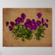 Deliciosas violetas moradas en papel texturizado impresión de poster floral de papel envejecido.