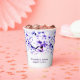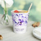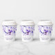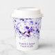 El diseño de Violetas Elegantes presenta el fondo de un hermoso ramo de delicadas violetas en plena floración. Los nombres de la Novia y el Novio junto con la fecha de la boda se muestran a continuación. Diseñado para coordinar con el "Conjunto de Boda Católico Violetas Elegantes".
