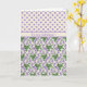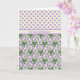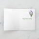 Tarjeta de cumpleaños de bonito para una novia, con patrones de juego de violetas y puntos de polka malva en un fondo de color crudo; de un motivo acuático pintado a mano por Judy Adamson.
