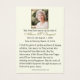 Esta elegante tarjeta católica de oración conmemorativa del funeral ofrece una serena imagen de la Santísima Virgen María, Nuestra Señora de la Gracia, rodeada por un acuerdo floral, que ofrece un hermoso tributo a un ser querido fallecido. La parte delantera de la tarjeta incluye el nombre del fallecido, sus fechas de nacimiento y muerte, y la frase 'En la memoria amorosa', todo escrito en un guión elegante. El otro lado es el personalizable con una foto personal y una conmovedora oración por el alma de los difuntos, invocando la intercesión de la Santísima Virgen María. Esta tarjeta sirve como un conservador duradero para la familia y amigos, trayendo consuelo y esperanza a través de la misericordia de Dios. Ideal para funerales católicos y servicios de recuerdo, estas tarjetas de oración son una manera sincera de honrar la vida y la fe de tu ser querido.