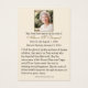 Esta elegante tarjeta católica de oración conmemorativa del funeral ofrece una serena imagen de la Santísima Virgen María, Nuestra Señora de la Gracia, rodeada por un acuerdo floral, que ofrece un hermoso tributo a un ser querido fallecido. El otro lado es el personalizable con una foto personal y una conmovedora oración por el alma de los difuntos, invocando la intercesión de la Santísima Virgen María. Esta tarjeta sirve como un conservador duradero para la familia y amigos, trayendo consuelo y esperanza a través de la misericordia de Dios. Ideal para funerales católicos y servicios de recuerdo, estas tarjetas de oración son una manera sincera de honrar la vida y la fe de tu ser querido.