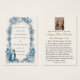 Recuerda a tus seres queridos rezando con esta hermosa imagen de la Santísima Virgen María en un marco floral azul. Dentro del marco está la plegaria HAIL MARY. Nuestras tarjetas de oración para conmemorar el funeral le ofrecerán comodidad a usted y a los que ama. Se pueden modificar todo el texto y las fuentes.