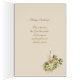 con el Niño Jesús sosteniendo un cáliz con un ramo floral blanco debajo. Un diseño similar está dentro con el santo rosario y un versículo de la escritura en el lado derecho. Todo el texto y las fuentes se pueden modificar para cualquier ocasión.