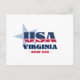 Postal de Virginia. Un diseño tipográfico creativo que encapsula la esencia de Virginia con colores rojo, blanco y azul audaces y elementos patrióticos, incluidas estrellas y rayas.